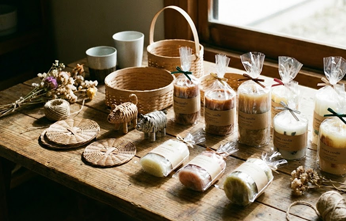 雑貨制作を通じて、手先を動かすことで集中力を養いモノづくりの楽しさを実感。作品はバザーやネットショップで販売し、やりがいにつなげます。